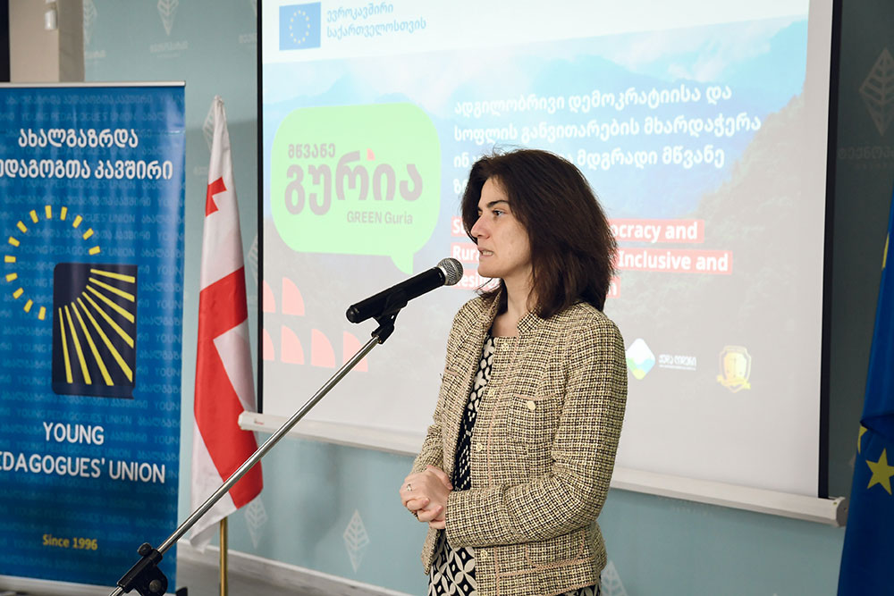 „ ევროკავშირი საქართველოში სოფლის განვითარების პროგრამას უკვე მეათე წელია აფინანსებს. ამ პროგრამის ფარგლებში, ევროკავშირის ძირითადი დაფინანსება საქართელოს სახელმწიფო ბიუჯეტისთვის გამოიყოფა, რომელსაც თან სდევს საერთაშორისო და არასამთავრობო ორგანიზაციების დაფინანსებაც. სწორედ ამ დაფინანსების ფარგლებში, მოხარულები ვართ, რომ მომდევნო სამი წლის განმავლობაში, გურიის სამივე მუნიციპალიტეტში, სოფლის განვითარების პროგრამა განხორციელდება, რომელიც, მიზნად ისახავს, სოფლის პრიორიტეტებზე დაყრდნობით საჭიროებების გამოვლენას და ამ საჭიროებებისთვის ფინანსური რესურსების გამოყოფას, რაც უზრუნველყოფილი იქნება ადგილობრივი მოსახლეობის, არასამთავრობო სექტორის, ბიზნესისა და ადგილობრივი ხელისუფლების ერთობლივი მუშაობით. ძალიან დიდი იმედი გვაქვს, რომ ადგილობრივი თემის ჩართულობით, გურიის რეგიონში ნაბიჯები გადაიდგმება შემდგომი განვითარებისკენ“. – ქეთევან ხუციშვილი, საქართველოში ევროკავშირის წარმომადგენლობის სოფლის განვითარების, სამოქალაქო უსაფრთხოებისა და კრიზისების მართვის პროგრამების მენეჯერი.
