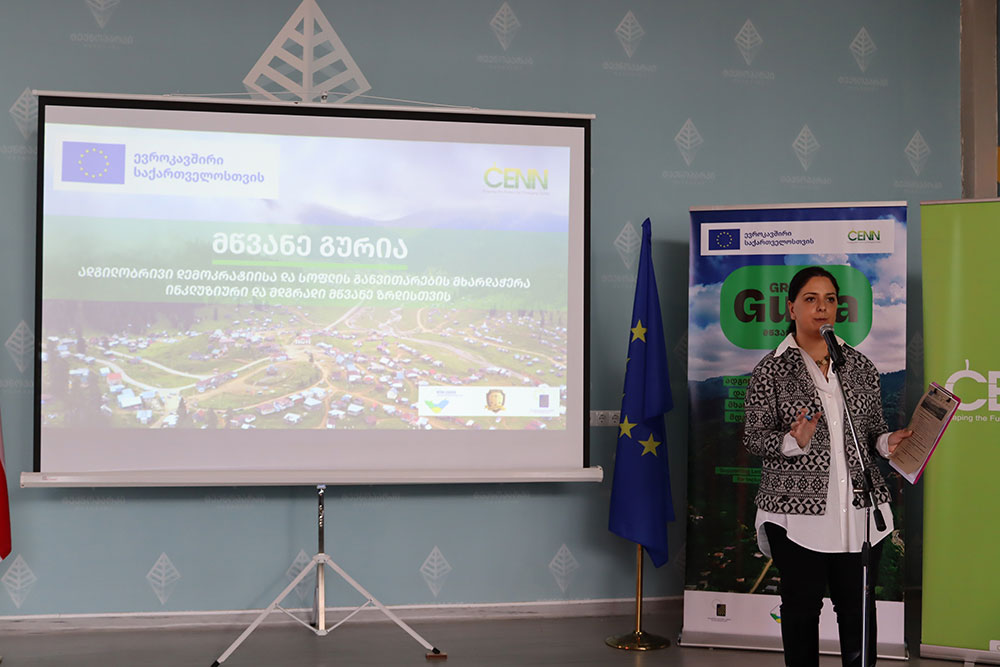 22 მარტს, 2023, ევროკავშირის მიერ მხარდაჭერილი ახალი პროექტის – „მწვანე გურია – ადგილობრივი დემოკრატიისა და სოფლის განვითარების მხარდაჭერა ინკლუზიური და მდგრადი მწვანე ზრდისთვის“ – გახსნითი ღონისძიება გაიმართა, რომელსაც CENN-მა, პარტნიორ ორგანიზაციებთან ერთად უმასპინძლა. პროექტი სამი წლის განმავლობაში გურიის რეგიონში სიღარიბის შემცირებისთვის, მოწყვლადი თემებისთვის ეკონომიკური და სოციალური გარემოსა და საცხოვრებელი პირობების გაუმჯობესებისთვის იმუშავებს.